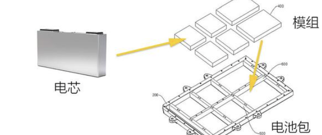 電池本體組裝成為電池模組,電池模組再成批打包形成電池包( Pack )裝到車上。