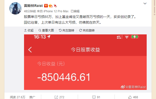 加起來,昨天一共虧了120多萬,也算是破紀錄了。