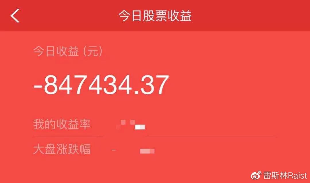 早上起牀,看到朋友圈有人驚呼“股災了”,於是我打開自己的軟件,發現上面紅底白字,赫然寫着這樣一串數字: