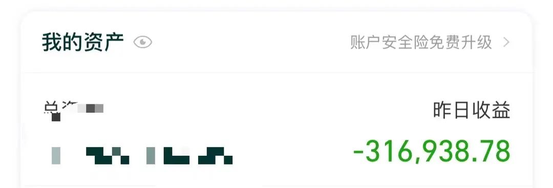 原以為虧四十多萬就是股災了,沒想到最後直接向着90萬去了。這還只是純股票,晚上基金結算,又虧了30多萬: