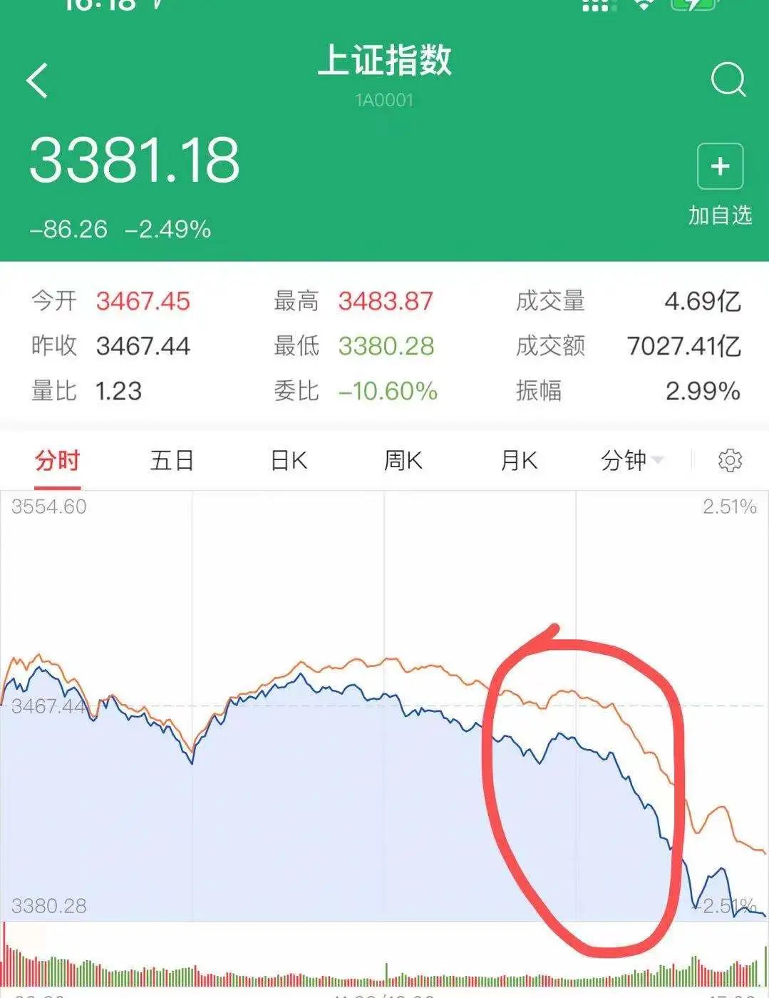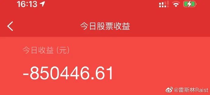 然後我就去上了個廁所,順帶刷了刷微博,發現平時一直髮運動的一位博主也開始發“股災了”,於是趕緊又打開自己的軟件,發現上面的數字已經變成了: