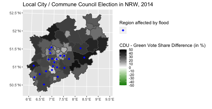 而對於基民盟,當前的形勢帶來了比過去大得多的挑戰:傳統上執政黨所習慣的“災後重建”模式已經不再適用。未來(自然)災害對政治的影響,很可能不會繼續重複過去的“套路”。Bechtel 和 Hainmueller一項2011年的研究指出,2002年德累斯頓易北河的洪災事件,對當時執政的社民黨在2002年及2005年的選舉,有顯著助力。兩位研究者認為,災後資金援助起到了重要作用【5】。