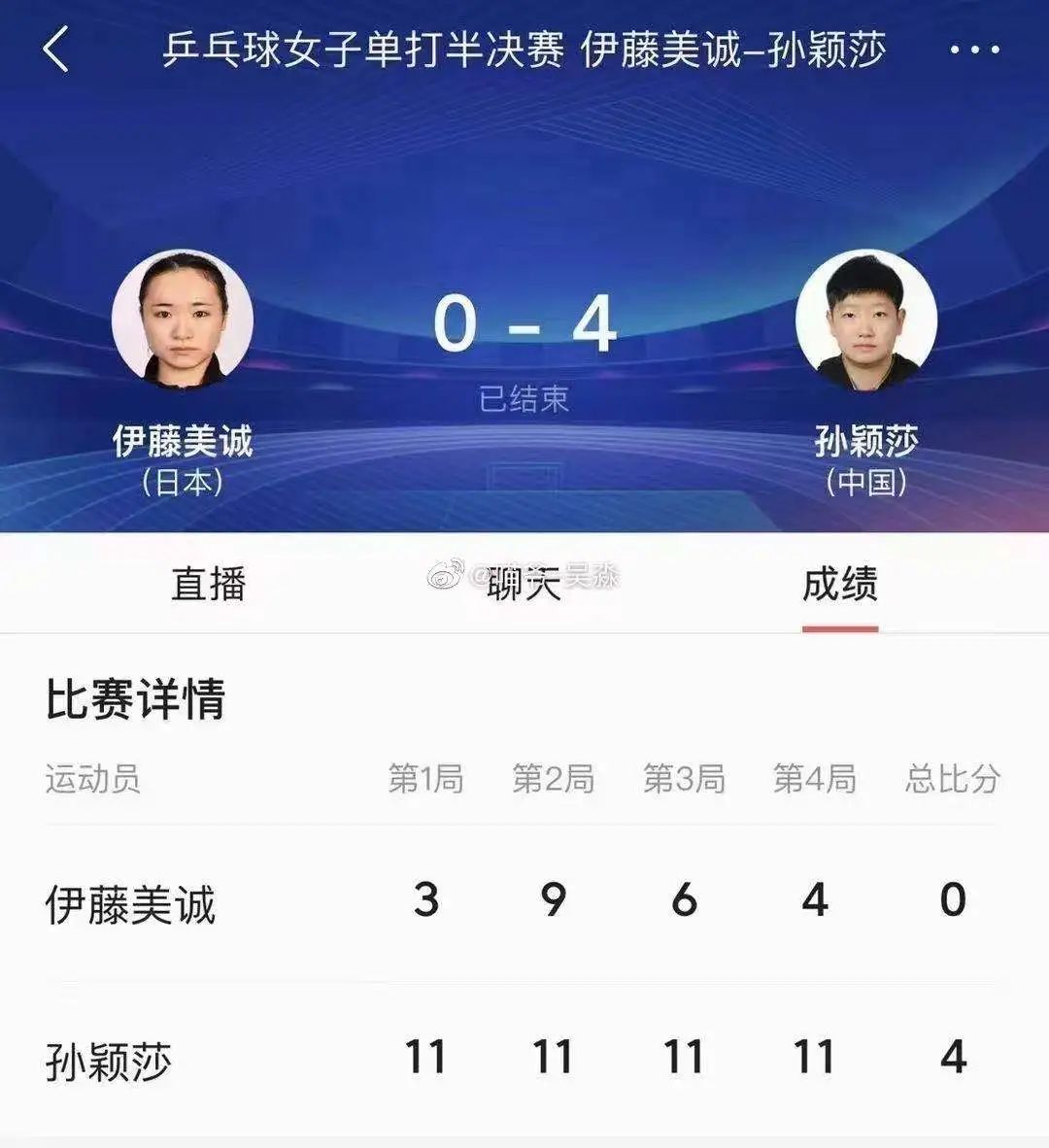7月29日中午的東京奧運會女子單打半決賽,孫穎莎戰勝伊藤美誠!!!!
