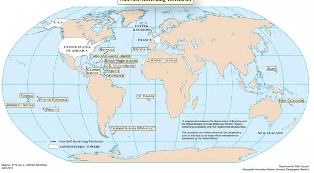 截止目前,像馬島一樣被美英等列強霸佔的非自治領土,共有17個,包括大家熟悉的關島。