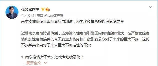 ②2021-07-29張文宏醫生微博《南京疫情促使全國經受壓力測試,為未來疫情防控提供更多思考》