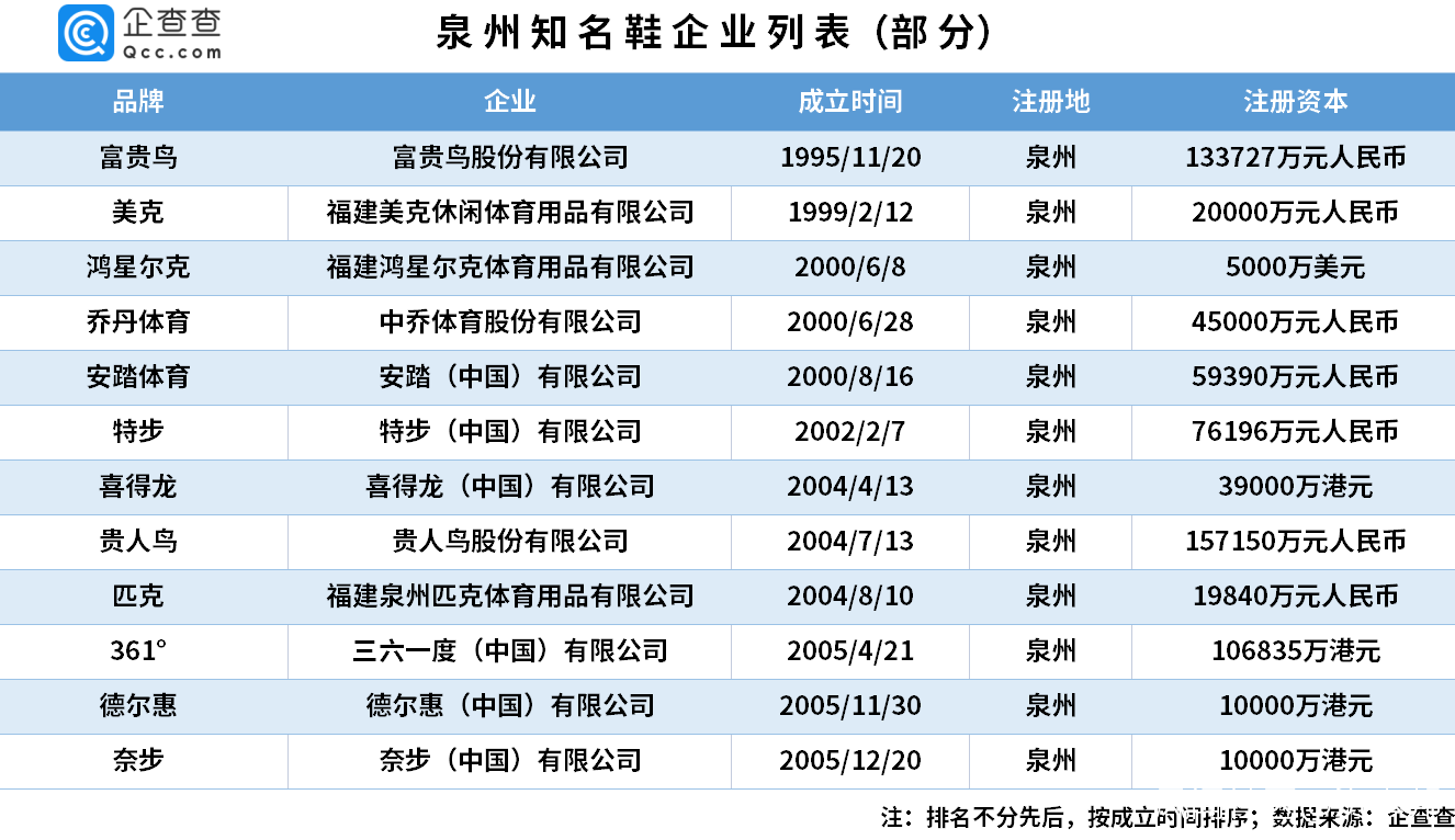 除此之外,近期被贊“國貨之光”的鴻星爾克、貴人鳥等,也是泉州麾下的企業。有意思的是,泉州還有一個“中國鞋都”的稱號,因為除了李寧之外,幾大國產品牌運動鞋幾乎都來自晉江,像安踏、特步、貴人鳥、361°、匹克等。