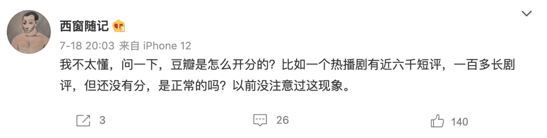 而有的劇開播快10天,全長30集演了18集,有近6000短評,100+條長評還是遲遲不開分,難道是心虛?