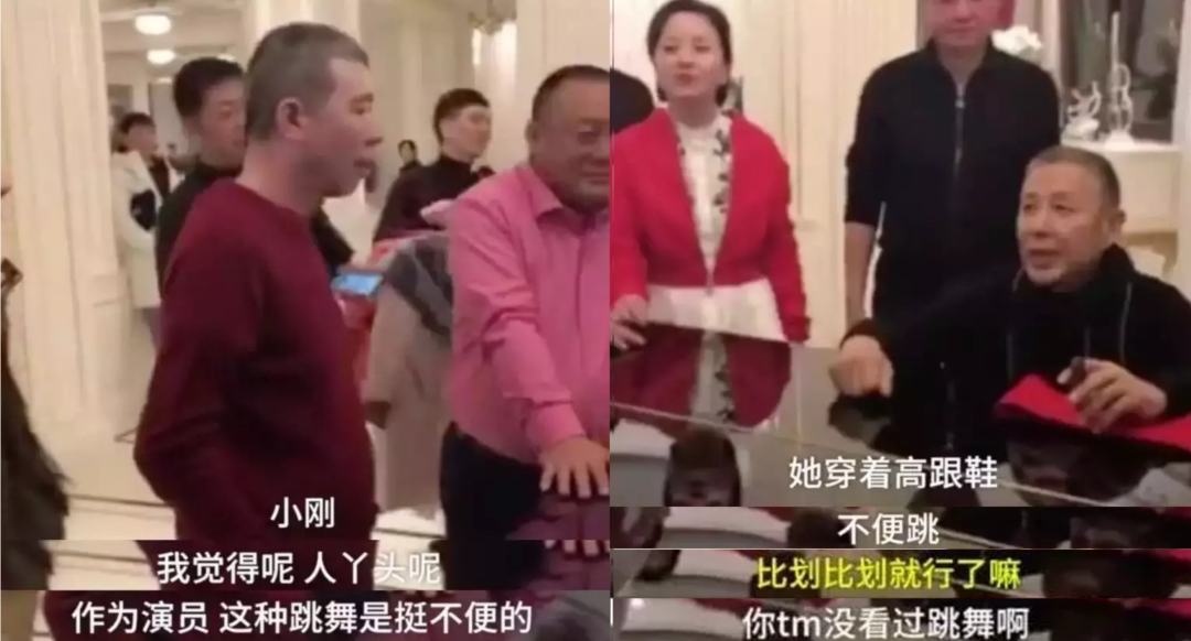 苗苗被架着下不了台,還是脱下高跟舞了一段,給足馮導面子。