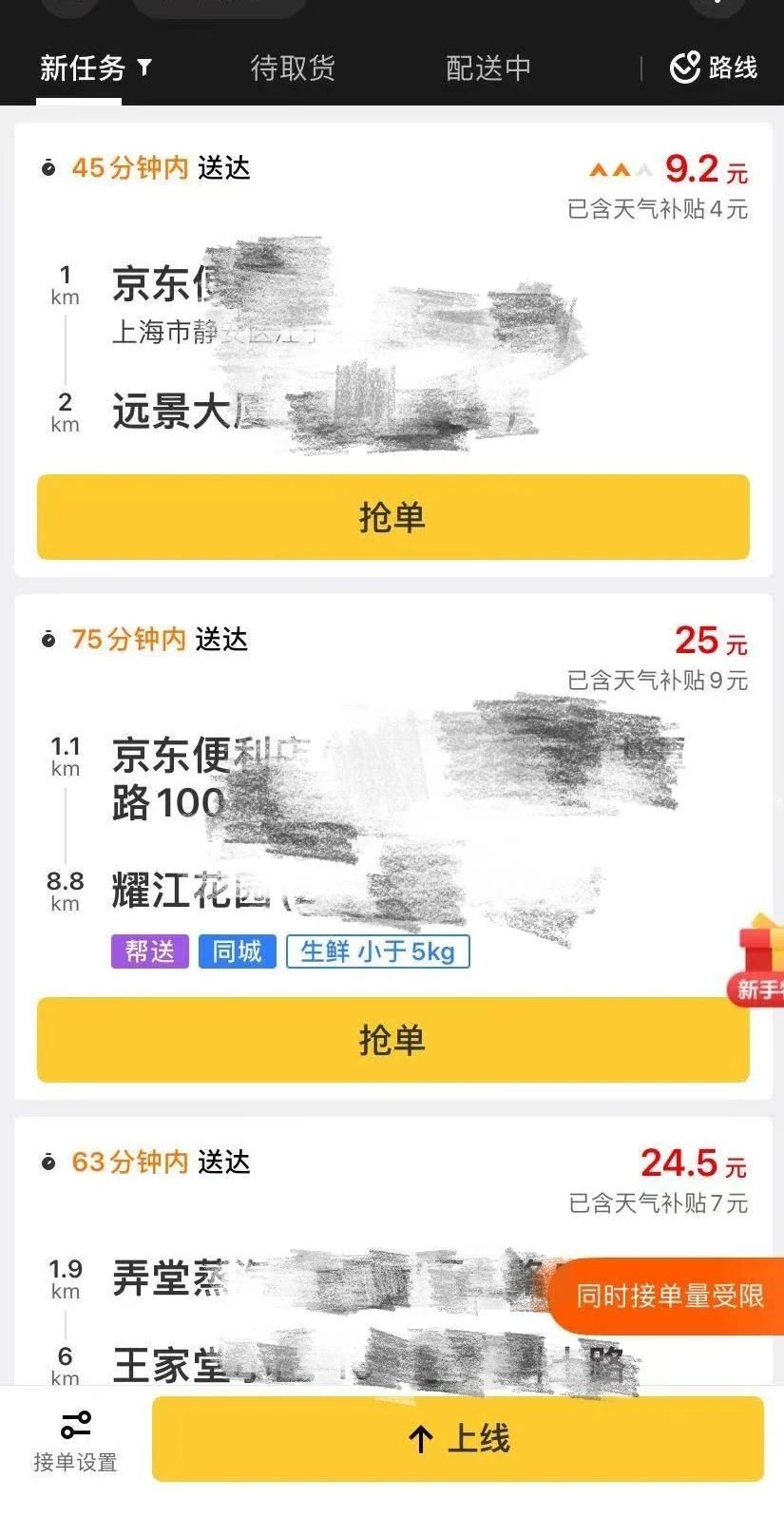 記者就“天氣補貼的標準”“夏季衝單激勵制度的天數、有效單數和獎金等如何劃定” “各個站點和地區衝單是否有統一的標準”等問題詢問了美團、餓了麼等多家平台,截至發稿,未得到回覆。京東到家則表示,平台會根據騎手所在區域、跑單數量、等級、服務質量配置不同活動。遇到午高峯高温時段,平台會增加跑單激勵活動,適時增加訂單價格。此外,平台全年都有跑單激勵活動,415、618、雙11等大促節點也會適當增加激勵。
