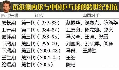 1983年,在東京世乒賽上,中國乒乓隊的世界冠軍,核心主力蔡振華遇到了一個17歲的歐洲小將。雖然,蔡在最後以總比分2-0取勝,但中間小局雙方一度打到28-28平(當時21分制),非常激烈,很多人就此記住了這個瑞典小將的名字——瓦爾德內爾。但在那時,強大的中國乒乓軍團還沒意識這是一個將纏繞自己二十多年的對手。