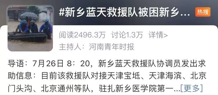 當河南青年時報發了#新鄉藍天救援隊被困新鄉一附院#急需汽油、機油的求助微博後,更是被罵上了熱搜。