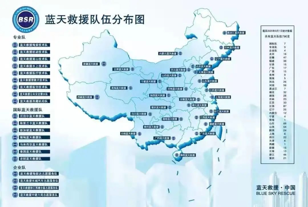 雖然是民間救援隊,但如今的藍天救援隊已經在全國有790支公益救援隊,遍佈31個省市自治區。