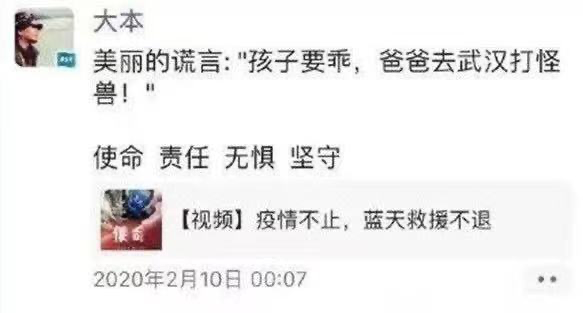 他最後的朋友圈中告訴孩子:要乖,爸爸去武漢打怪獸。