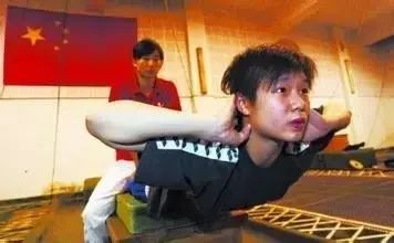 因為跳水非常考驗體能,施廷懋每天都得負着和自己體重差不多的80斤槓鈴,在做深蹲練習,一練就是幾個小時。