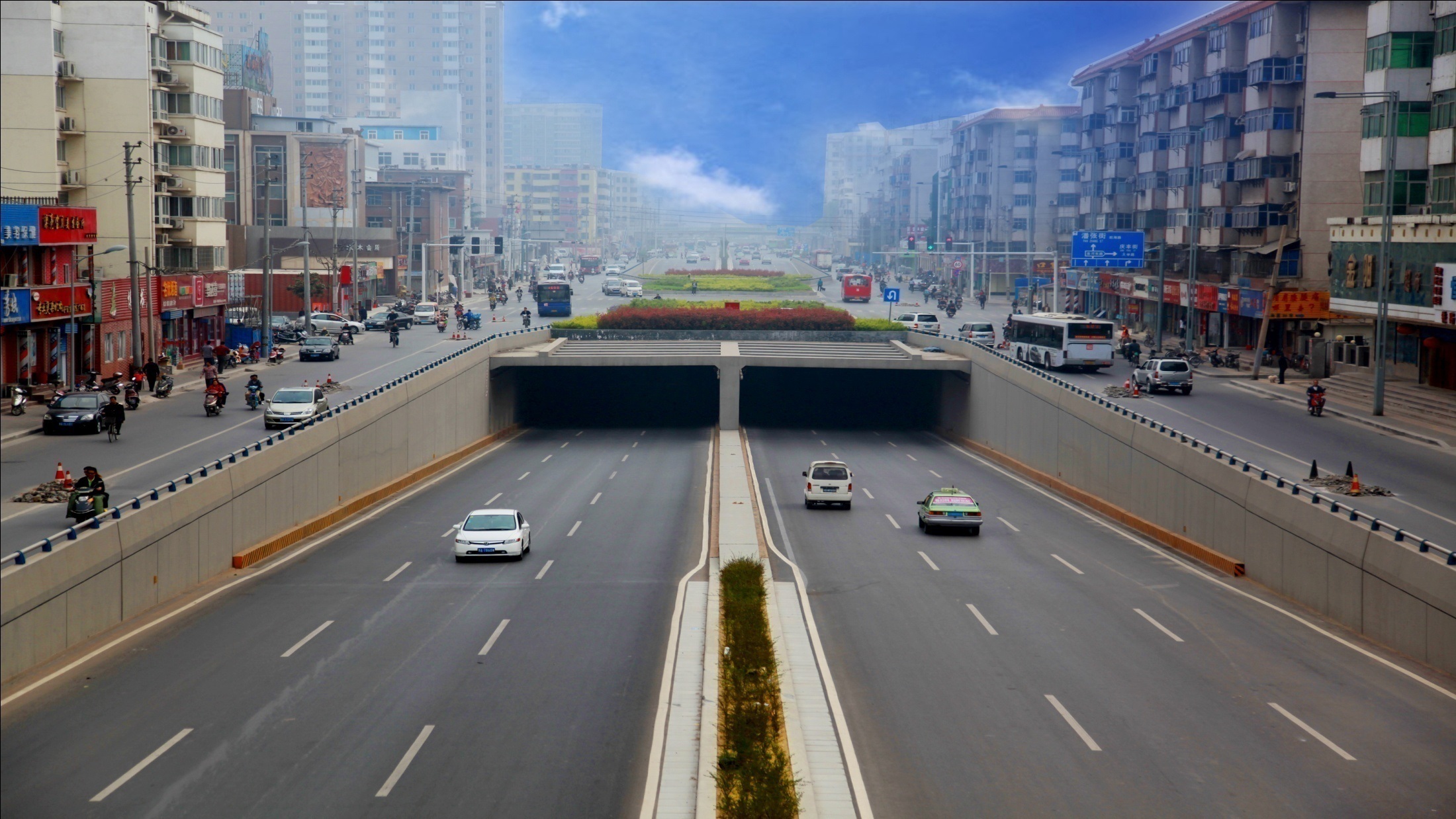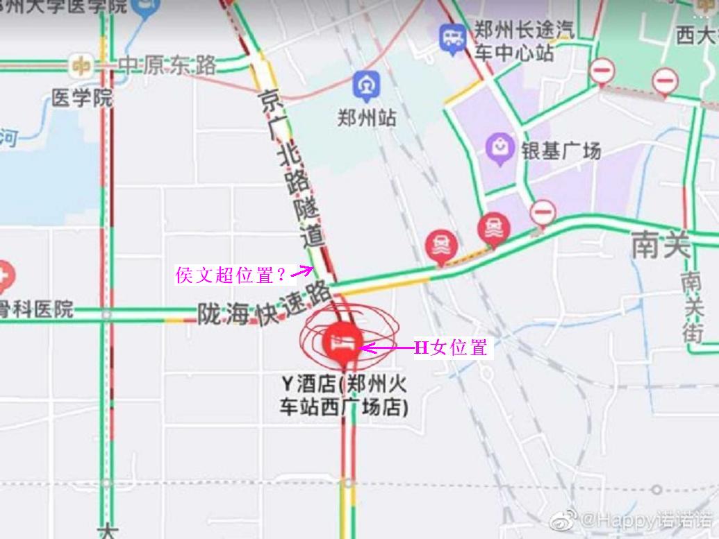 1)7月20日下午3:45****左右,京廣隧道北段南出口處開始發生擁堵。原因是輔道前面不遠處天橋下有積水,三輛小車不願或不敢冒險趟水通過,並排停在三個車道上。之後不斷有後續車輛加入擁堵隊列。約4:05,微博女博主Happy諾諾諾(以下簡稱H女)開車堵在輔道;約4:30,侯文超也開車經過隧道,並在靠近南出口的輔道上堵塞。他們各自的位置如下圖一(H女微博上發的自己位置圖,侯的位置是我猜測)。圖二是網友指示的堵車位置,圖三是京廣隧道進出口的原來樣子,可見進出車道是分開的,各有三條。出了隧道仍有一段低於地面的輔道,之後才是各種匝道和高架路。