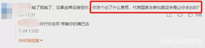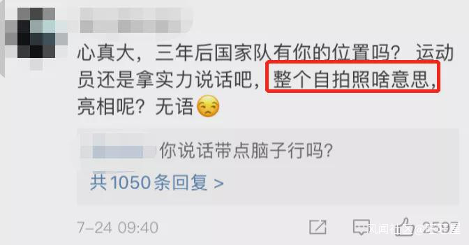 因為比賽發揮失常,她沒有進決賽,於是發了一條微博又遺憾又故作堅強。在這種賽場上,輸贏都很正常,但評論區開始挑剔她了——“你發個慫了是什麼意思,代表國家去參賽是讓你去慫的?”