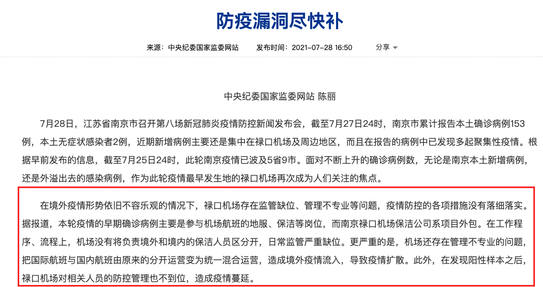 所以我很認同央視所説的,這輪疫情,最開始是由南京祿口機場管理混亂引起的。