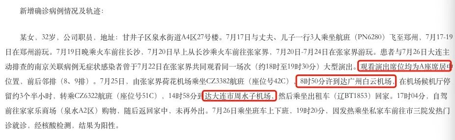 不僅是瀋陽這起病例,還有大連確證的4起病例,途徑南京祿口機場,然後前往張家界遊玩,最後把張家界變成了南京疫情外溢全國的翹點。