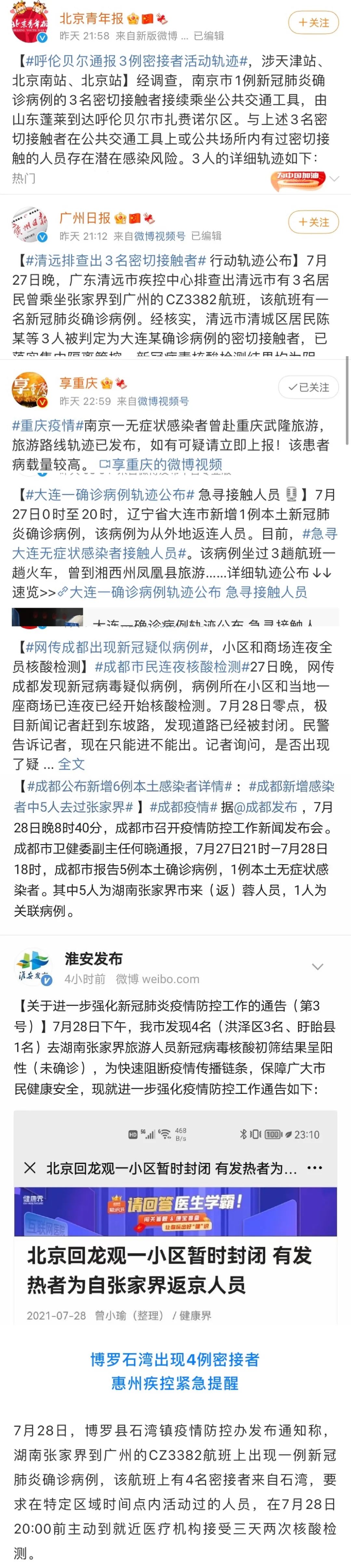 至於密接和次密接人羣所影響到的城市,那就更多了,昨天深夜的時候,我都看到不下3座城市連夜發出通報。