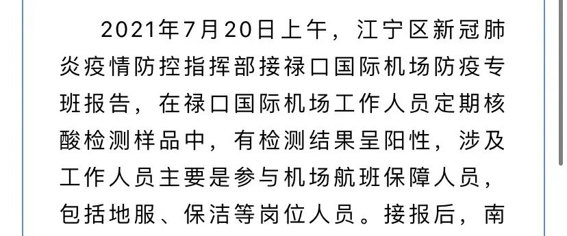 7月20日,南京祿口機場例行核酸檢測,最終發現了9例陽性,主要是機場工作人員。