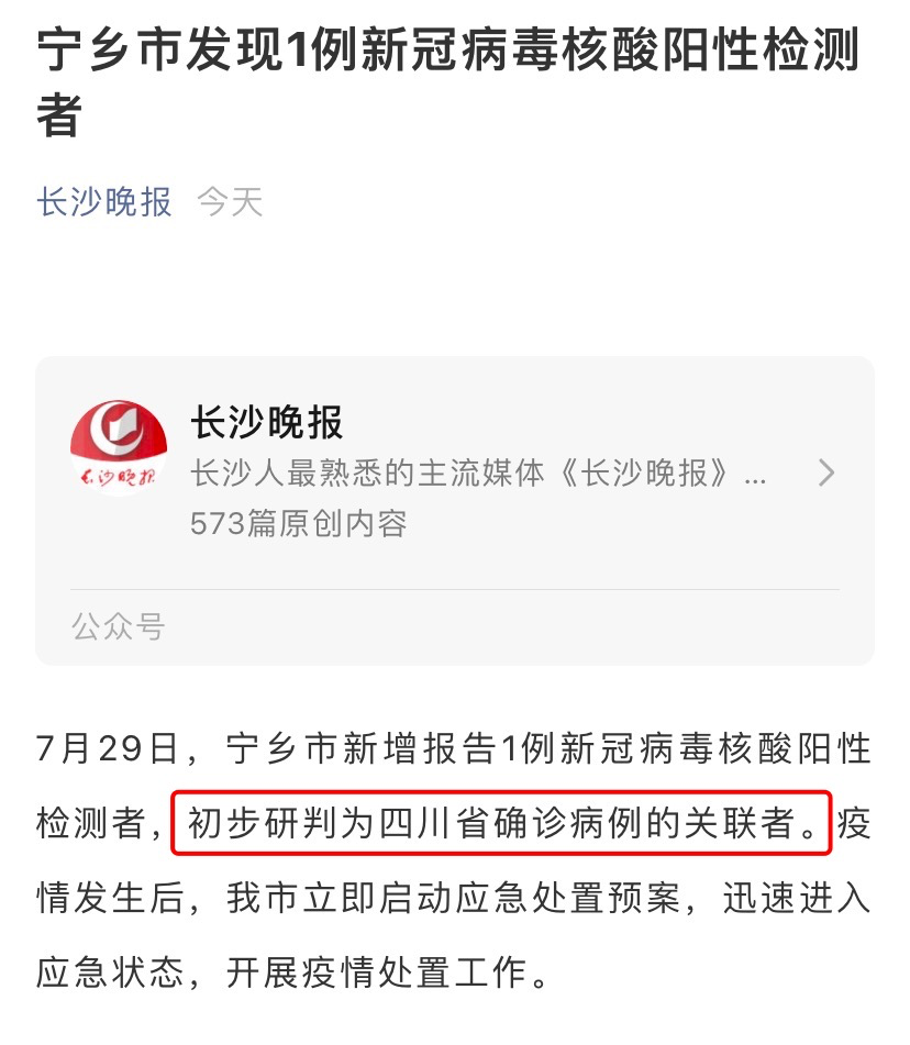 寧鄉確證1例,是四川省確診病例的關聯者。
