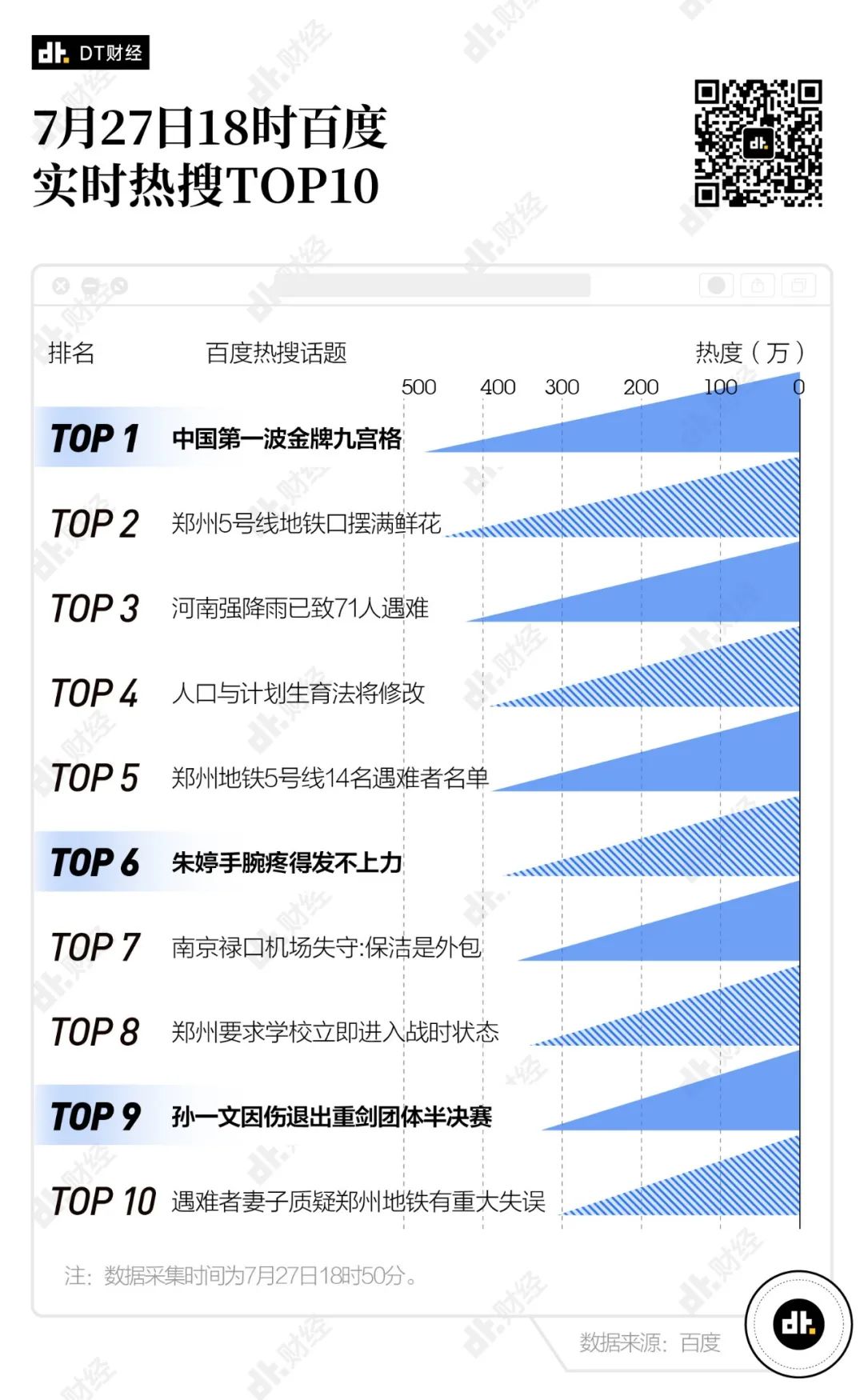 截至7月27日18時,百度TOP10話題當中只有3個奧運相關,其他都是時下熱門的社會議題。