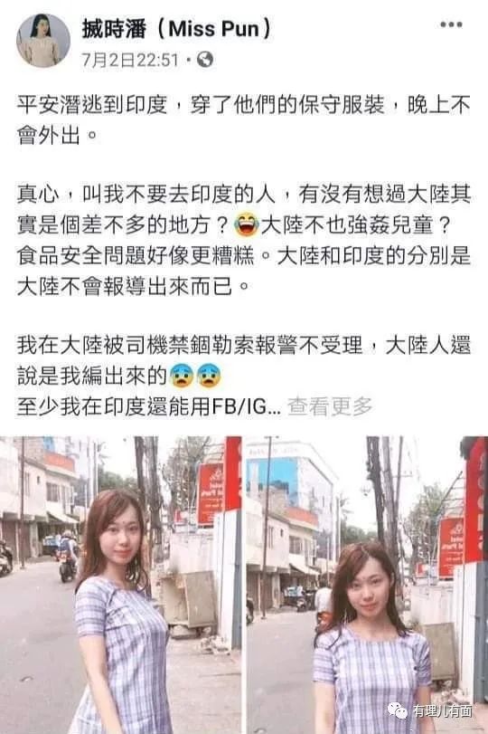 其本人也知道印度“強姦大國”的美名,7月2日其向狼粉們報平安時也説自己穿上保守服裝,晚上不會外出。並不忘黑中國內地一把,説內地治安更差,一樣強姦,印度其實不錯。