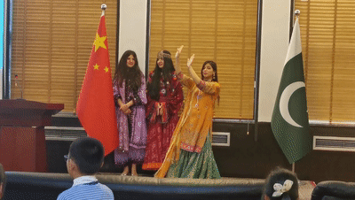 接下來進入到大家最為期待的文藝交流環節,巴基斯坦的姑娘小夥兒紛紛上台,表演具有獨特風情特色的舞蹈、演唱中文歌曲。來自中國的青少年朋友也不甘示弱,紛紛上台獻上自己的拿手節目。