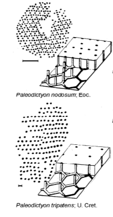 從化石年代來看,Paleodictyon nodosum 是世界上最早出現的一批覆雜生物,大約在5千萬年前滅絕。然而,研究者們並不知道 Paleodictyon nodosum 究竟是什麼生物留下的。