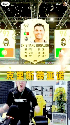 手氣好,能踹開椅子尖叫。至今他的頁面點贊最高的一條,是抽到C羅。如果不是直播間消音,下一秒觀眾就要聽到他的三字經問候了。