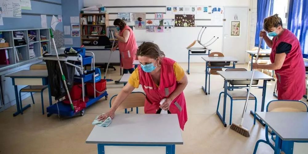 體育活動必須在户外進行。當室內練習是“必不可少的”時,**“只允許戴口罩且保持 2 米距離的低強度活動。”**食堂保持不變,但“同一班學生每天在同一桌吃午飯”,儘可能與其他班級保持兩米的距離。餐具和托盤的個性化服務系統化,散裝食品供應暫停。