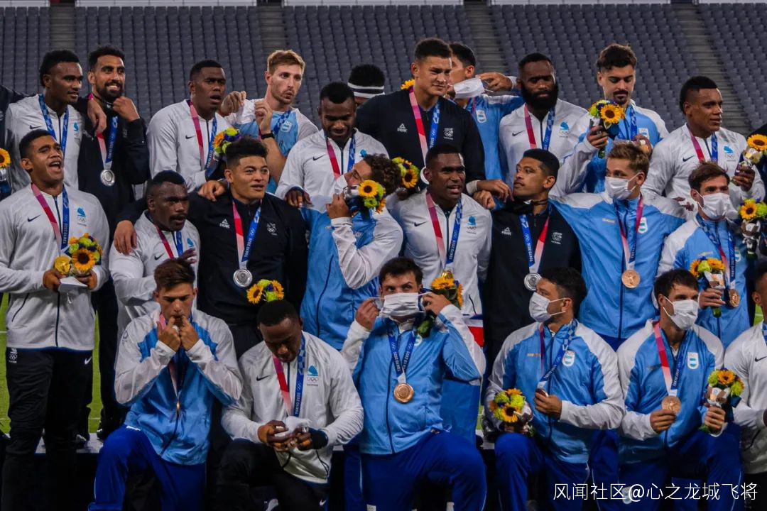 美國跆拳道運動員在領取獎牌後,沒有戴口罩,便給了她的俄羅斯對手一個大大的擁抱。來自斐濟的七人制橄欖球隊和新西蘭、阿根廷運動員一起合影留念,幾乎沒人戴口罩。