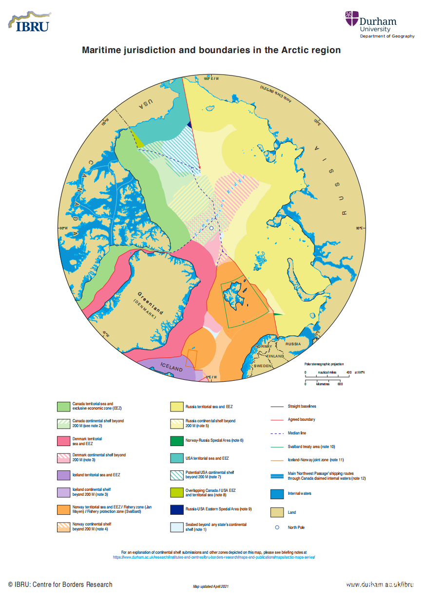 説到這裏有小機靈鬼要問了,北極不是除了陸地,還有海洋嗎?那麼大片海,總不至於被分了吧?很可惜,世界上還存在一個叫《聯合國海洋法公約》的東西。看過我們“黑海”那期節目的朋友,應該還記得這個公約。《公約》規定,國家的領土之外可以劃12海里領海,再往外還能劃200公里專屬經濟區,再再往外,還能劃350海里的大陸架。這麼一把“尚方寶劍”,不用就是傻。北極八國,不管是不是《公約》締約方,都爭先恐後地提交了自己的大陸架主張。這些主張,重合的地方有不少,就是沒有空出來的地方。整個北冰洋,除了少數幾個“點”,全成了大陸架。要我説,《聯合國海洋法公約》乾脆改名叫“瓜分北極公約”算了,北極八國,也可以改名叫北極八霸。