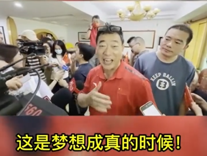 收看比賽的汪順爸爸説,這是他夢想成真的一刻!