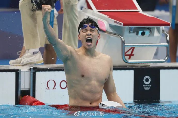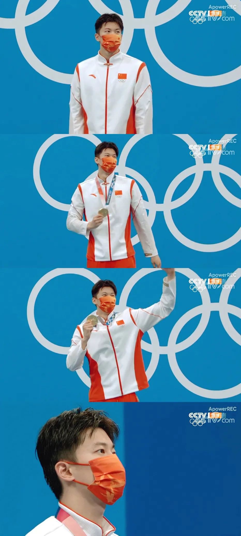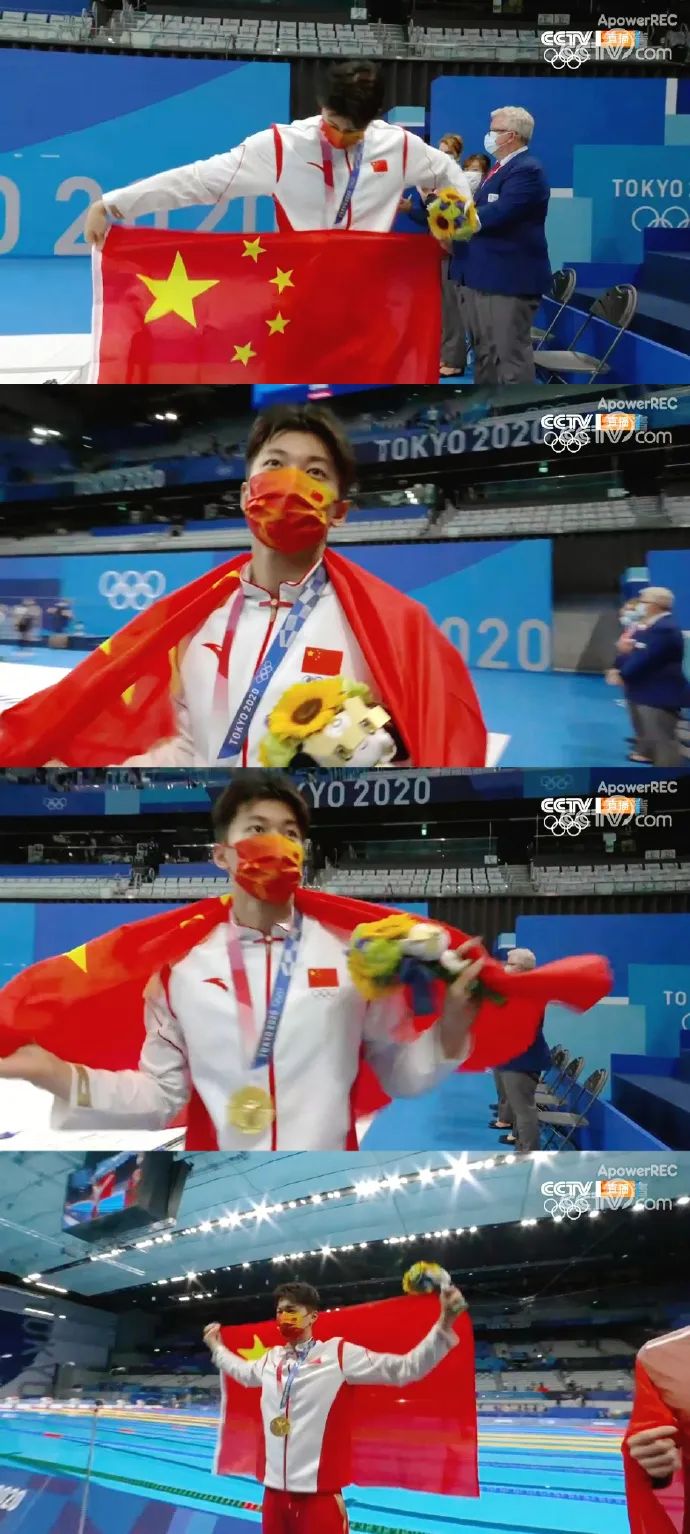 汪順:“我覺得是祖國人民給我們的,我覺得肩上的使命非常沉重,尤其是在東京。我也做到了我在賽前説的,要讓國旗在東京飄揚,讓國歌在東京奏響,我做到了!”