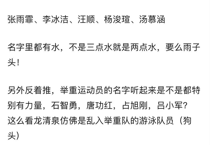 汪順和張順,一字之差,名字真的是有緣,游泳的名字哈哈哈哈。