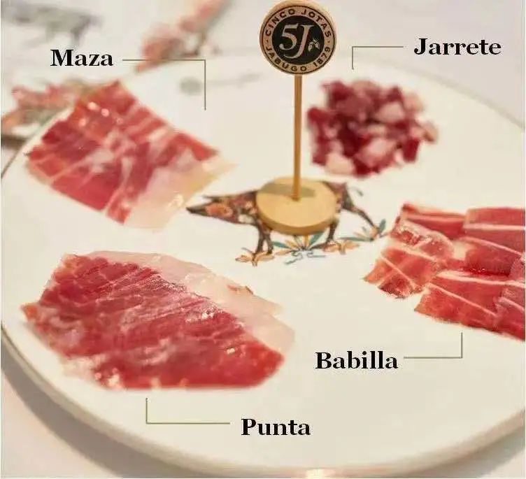 而更讓我吃美的,則是第一次從火腿切割師手裏拿到的一盤。每個部位口感不同、味道不同。Maza雪花豐富、Babilla肉香充足、Punta更為肥美、而Jarrete則帶着巧克力的香氣!