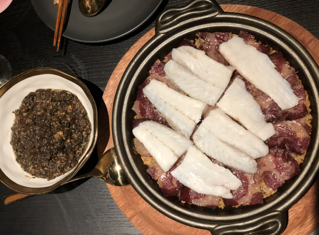 他們會把火腿蓋在米飯上,搭配新鮮的東海黃魚和台州鄉下的梅乾菜醬,做成火腿東海黃魚燜飯,每一口都像一道高級料理;