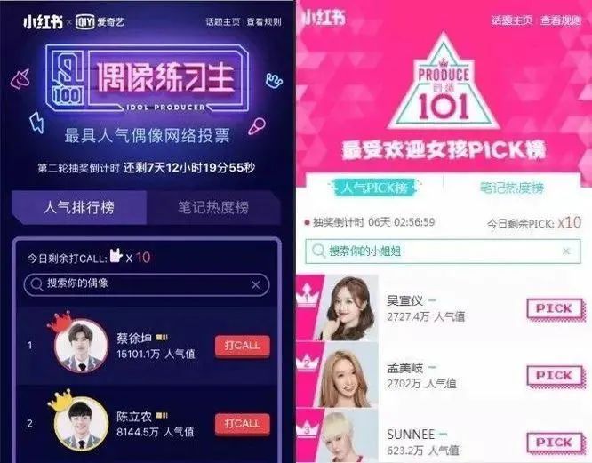 小紅書的用户爆增是在2018年5月,此前5年,小紅書積累了1億用户量;而在之後的8個月,小紅書用户數翻倍至2億。這是在接連贊助了兩檔爆款節目《偶像練習生》《創造101》後的成果,這一運營策略,實現“圈層穿透”吸引了一批新用户,追綜藝的這一批中學生用户羣體,一邊為新生代偶像打call,一邊被他們的時尚、美妝種草,從而開始在小紅書上分享學習打卡的筆記。