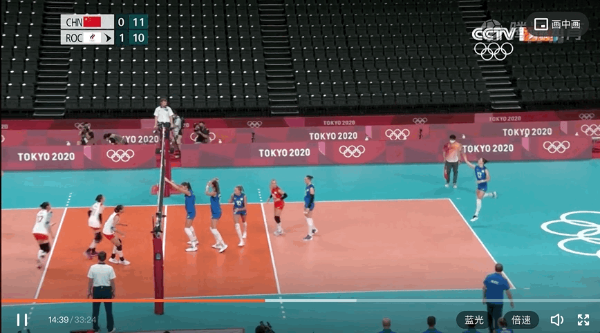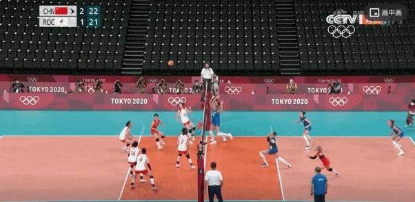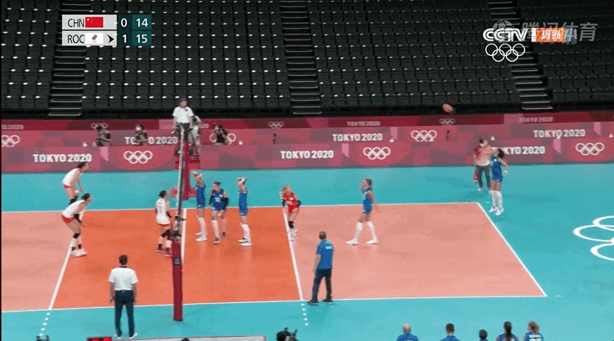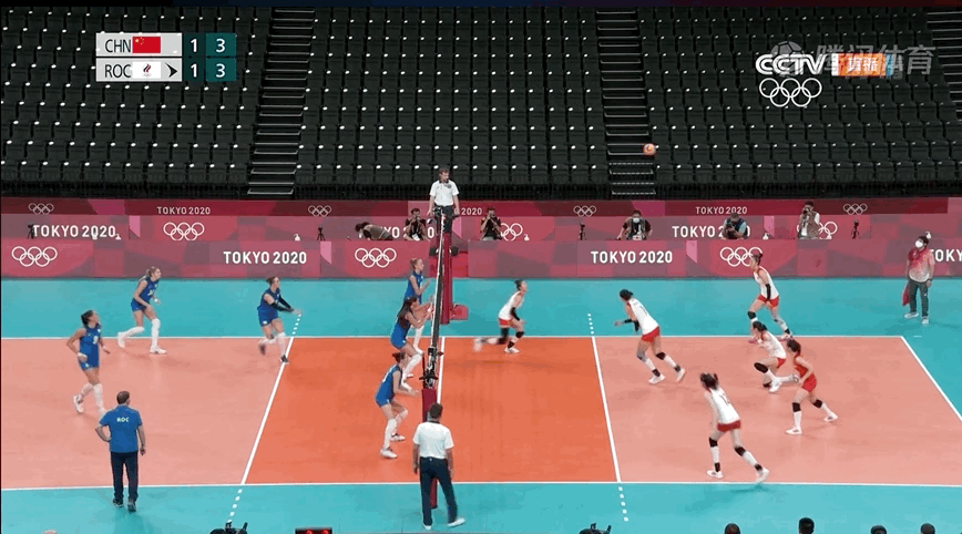 比如一傳到位但李盈瑩在四號位的進攻仍然被對方成功攔下,隨後中國女排無攻過網:
