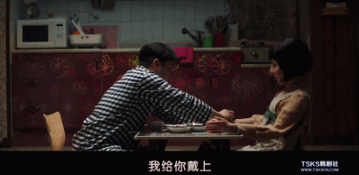 飯桌上, 他給對面的女人細心佩戴手鍊,抱怨着工作的辛苦。