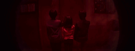 開門一看,閃爍的紅燈下,是三個一邊伸手一邊扭頭的孩子。