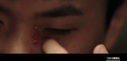 注意看,他的臉長滿了類似痘痘的東西。