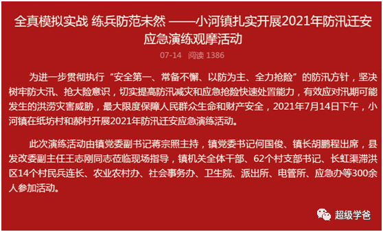 比如7月14日,鶴壁浚縣小河鎮,就展開了全真模擬實戰,開展2021年防汛遷安應急演練觀摩活動。