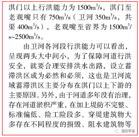 其中提到,淇門(衞河進入浚縣的第一站,也是淇河匯入衞河的地方)以上的行洪能力是每秒1500立方米,淇河至老關嘴(出浚縣的地方)段位每秒只有750立方米。