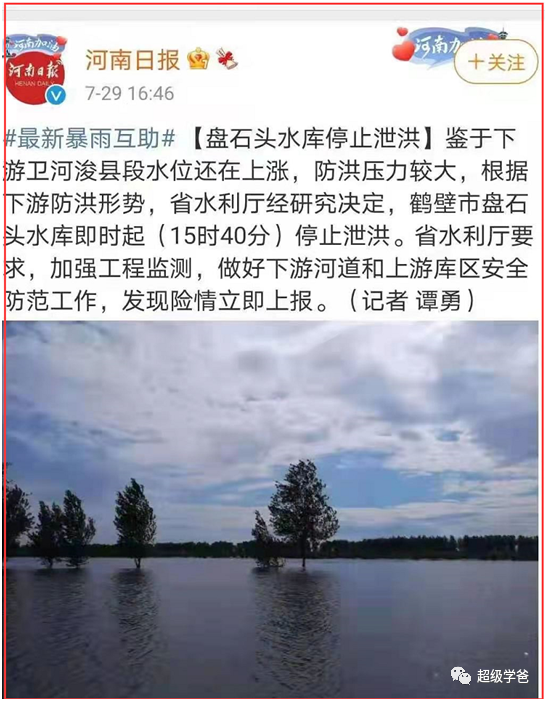 最近上游一直在泄洪。比如淇河上游的盤石頭水庫,今天下午才停止泄洪。這意味着,幾天之後浚縣的壓力才可能減小一點點。
