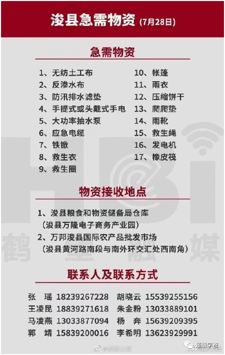 而且物資缺乏、設備缺乏!希望繼續伸出援手,幫助浚縣人民從全局打贏這場抗洪戰鬥!