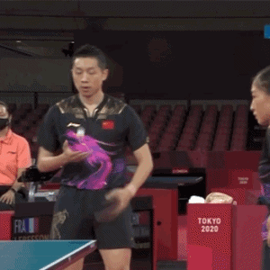因為這屆奧運會,給乒乓球項目新加了兩條規定,不能用手擦球枱、不能用嘴吹球。