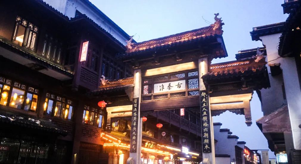 想要表現的歷史悠久一點,就上紅漆黃匾,飛角重檐,再掛上些紅燈籠。以此為典型的是南京夫子廟、成都文殊坊、阜陽文峯路。