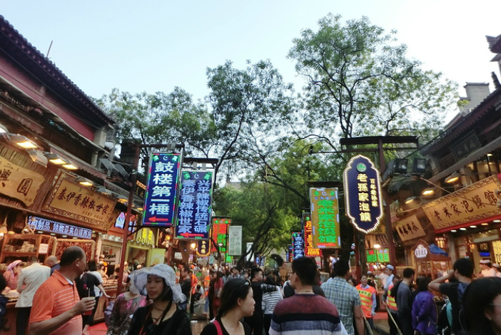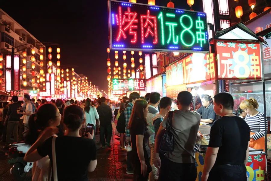 當你從這種仿古街的一頭走到另一頭後,襲上心頭的往往會是索然無味,因為它沒有人們想看的古街歷史介紹,有的只是炸串、烤肉等一系列小攤。